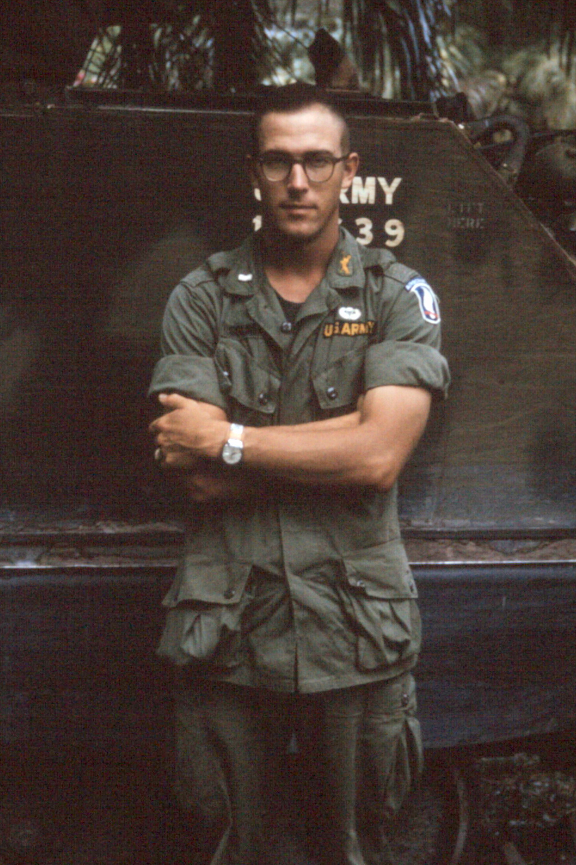 1LT Rich Goldsmith served his first combat tour in Vietnam from May 1965 to June 1966. He was a platoon leader with D Co, 16th Armor. That was a separate, airborne "tank" company which was part of the 173rd Airborne Brigade. It was equipped with M113s instead of tanks so they could be air dropped. He made three non-combat jumps and earned the Combat Infantry Badge (CIB). On his second tour in Vietnam from June 1969 to June 1970, he was a Mechanized Infantry company commander and Battalion S3 (Operations) in the "Triple Deuce" (2nd Bn, 22nd Infantry) assigned to various brigades of the 25th Infantry Division. During this time he engaged in some heavy combat and was awarded the Silver Star, the Distinguished Flying Cross, the Bronze Star with "V" among other valor awards, and the Purple Heart. Captain Goldsmith took command of C Company, 2-22 Infantry a few days after it had suffered a hit by a misdirected artillery round. The round killed 16 soldiers in one platoon. That event and the subsequent action left the company in bad condition and without their company commander. The company was taken off the line for a week of recuperation. Captain Goldsmith took command on the fourth day of that recovery. Less than a week after taking command of C Company, the action occurred in which he was awarded the Silver Star. On 7 September 1969, Captain Goldsmith distinguished himself by heroic actions as commander of C Company, 2nd Battalion, 22nd Infantry in the Republic of Vietnam. While on a reconnaissance operation his company came into contact with a large enemy force. Captain Goldsmith immediately deployed his unit and directed their fire on the hostile positions. As the battle progressed, Captain Goldsmith, with complete disregard for his own safety, exposed himself to the hail of fire as he led his men in an assault on the enemy emplacements. Upon nearing the enemy bunkers, Captain Goldsmith personally aided in destroying one of the machine gun emplacements while coordinating the movement of his three platoons and bringing indirect fire to bear on the enemy. Colonel Goldsmith was born in San Diego in 1941. His father had just been activated and commissioned in the Army because of the start of World War II. He moved with his family to various Army posts until his father deployed to France. He, his mother and younger brother joined his father in Germany immediately after the war in Europe ended. He graduated from Topeka High School in Topeka, KS. He received an appointment to attend West Point from which he graduated in 1963 and was commissioned a 2LT in Armor. He attended Armor Officers' Basic Course and Airborne School and was assigned to 4-12th Armored Cavalry at Ft Carson, CO, as an armored cavalry platoon leader until early 1965 when he was transferred to the 173rd Airborne Brigade on Okinawa. The 173rd was sent to Vietnam in May 1965. Upon return from Vietnam in 1966, he attended the Armor Officers' Advanced Course at Ft Knox, KY. He was promoted to Captain and commanded C Troop, 1-6th Armored Cavalry Regiment before returning to Vietnam in 1969. There being no armor or cavalry units available at the time, he volunteered to command an infantry company in the 25th Infantry Division. Following this second tour in Vietnam, he attended Tulane University in New Orleans, LA, for a Masters Degree. He served in Germany twice. Once as commander of 1-70 Armor and later as commander of "The Iron Brigade" (2nd Brigade, 1st Armored Division). He graduated from the Army Command & General Staff College in 1973 and from the Industrial College of the Armed Forces in 1981. He was on the faculty of the Army War College in Carlisle, PA, when he retired in January 1993 as a Colonel.