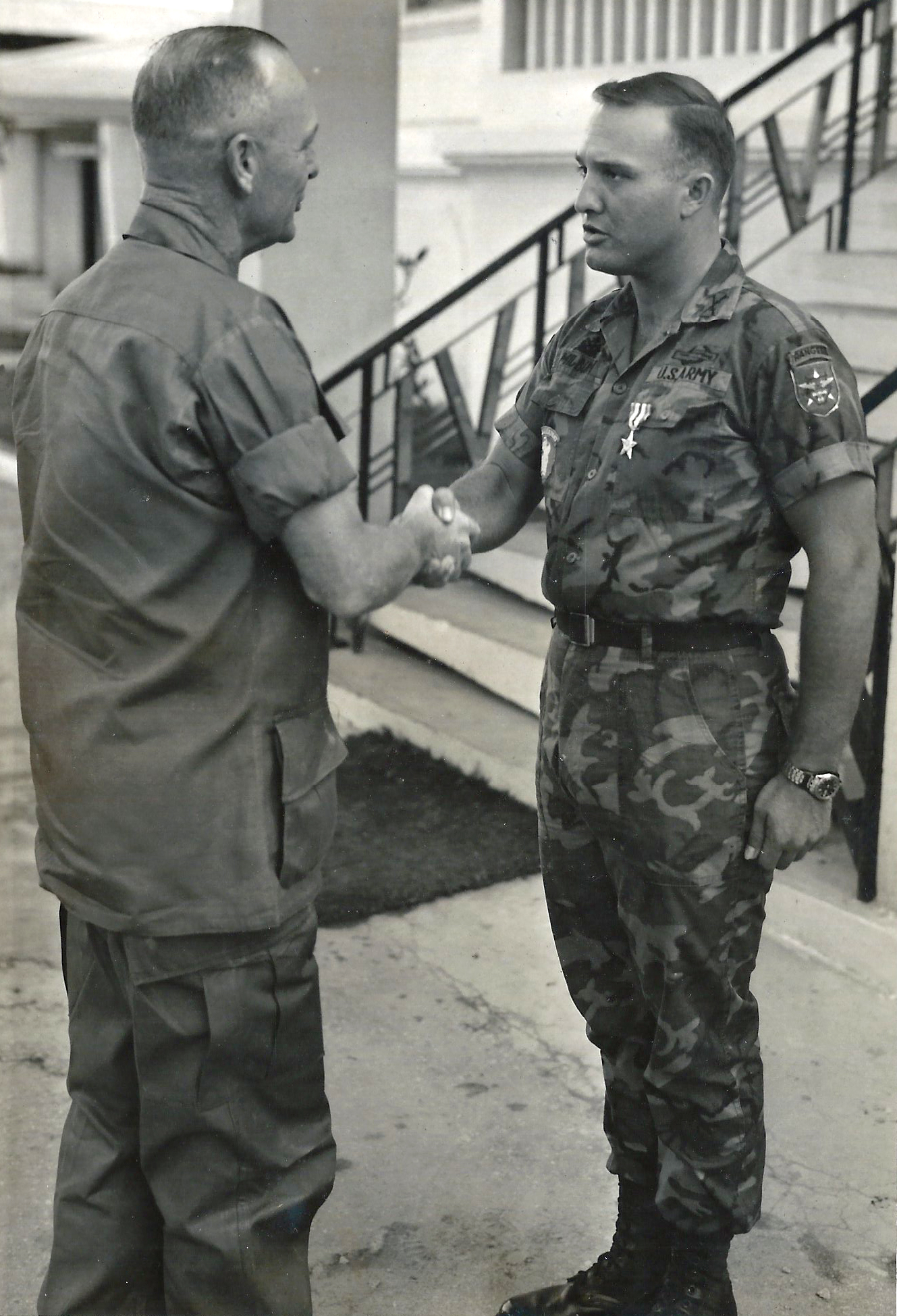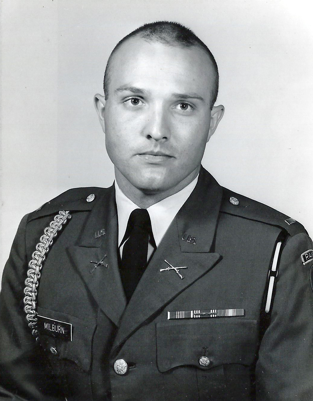 Stephen G. (Steve) Milburn, Major (Army of the United States, Retired) enlisted in the US Army from Redlands CA, December 1961. He retired from the Army following 20 years active duty and worked another 26 years as a Department of the Army Civilian employee. Major Milburn holds Bachelor of Science degrees in Finance and Management, and a MBA degree. Steve retired from Civil Service at Redstone Arsenal in December 2007 and now resides with his Wife in Madison, AL. His initial enlisted career provided him with valuable military skills and experiences. He served as an Infantry Private / Corporal / Sergeant / Staff Sergeant for the first 8 years of service. He held Leadership and Staff positions, with assignments including several posts in the United States, Korea, and West Germany, until reporting for Officer Candidate School (OCS) at Ft. Benning, GA, August 1967. He was his OCS Class Honor and Distinguished Graduate. Shortly following being Commissioned an Infantry Second Lieutenant, February 9th, 1968 he attended Ranger School, earning the coveted “Tab.” At the next assignment he became an Infantry Commander at Platoon and Company levels with 5th Bn 6th Infantry Regiment, 6th Infantry Division, Ft. Campbell, KY. Follow on assignments took 2Lt. Milburn to Ft. Bragg, NC for the Military Assistance Training Advisor (MATA) Course and then to Jungle Warfare School, Ft. Sherman, Panama Canal Zone. He deployed to Vietnam in December 1968. Lieutenant Milburn began the first of his two combat tours with the US Military Assistance Command - Vietnam (MACV) when assigned as an Assistant Battalion Advisor with the Vietnamese Army’s 44th Ranger Battalion, IV Corps, Republic of Vietnam. 1LT Milburn distinguished himself for gallantry in action while serving as Senior Advisor, 32nd Ranger Bn. While the unit was conducting a search and destroy operation on May 8, 1969, the battalion was ambushed by a superior enemy force and came under intense small arms, mortar and rocket fire from three sides. 1LT Milburn, without regard to his personal safety, moved through withering enemy fire to reach forward positions where he willingly and continually exposed himself to intense fire so he could advise his pinned down Vietnamese counterparts; he called for and adjust US artillery and direct air strikes onto enemy positions. As the battle continued 1LT Milburn concurrently coordinated the removal of casualties out of the kill zone and into secured locations for medevac. Inspired by his valiant and courageous example, the Rangers, though at a distinct tactical disadvantage, reorganized and pressed a counter attack throughout the night and into the following day. For 32 hours the Ranger’s attack was pressed and ultimately broke the enemy defenses, they moved on to destroy a large Vietcong (VC) base camp and regional military supply depot. The enemy left thirty-six dead on the battlefield, with vivid indications of many additional VC/NVA casualties resulting from friendly artillery and air strike munitions. For his gallantry in action 1LT Milburn was awarded the Silver Star Medal. Previously on March 5th, 1969 1LT Milburn was recognized for heroism while serving as an Advisor to the 44th Ranger Bn and local Regional Force units. The friendly organizations were involved in air assault operations into what turned into a “hot” landing zone (LZ) and close combat ground engagements. He repeatedly exposed himself to enemy fire while moving about the battlefield. He left protected positions to identify hostile fire sources; coordinate tactical options with his Vietnamese counterparts, organize arriving friendly troops; direct air, artillery, and friendly ground fires. As the air assault continued, 1LT Milburn directed causality collection and evacuations from around the LZ using departing, now unloaded, US helicopters. For his unselfish acts of bravery 1LT Milburn was awarded the Bronze Star Medal with “V” device for Valor. Later that same year, on August 29, 1969, 1LT Milburn again distinguished himself by heroic actions while serving as MACV Senior Advisor to the combined 44th Ranger Bn., 4th Ranger Group, RVN Army and Vietnamese Armored Cavalry Task Force (TF). On this date 1LT Milburn was moving with the TF conducting search and destroy operations with Rangers traveling mounted atop the armored vehicles. The mechanized column, moving on a narrow gravel road in a mountainous, heavily populated area, came under withering enemy small arms, mortar, and rocket fire which inflicted casualties on friendly military personnel and local civilians. 1LT Milburn left the safety of the armored vehicle he was traveling on and moved forward to the head of the column on foot, under intense enemy fire to assess the tactical situation, coordinate available counter fires, and make calls for tactical air and artillery support. When he saw the extent of friendly casualties he called in medevac helicopters. Disregarding his own safety, in spite of continuing heavy hostile fire, he was able to collect and ultimately evacuate all the dead and wounded. 1LT Milburn then returned to a forward position where he could better observe the ongoing fight; support the Rangers’ dismounted counterattack, and provide tactical recommendations to the Vietnamese TF Command Group. 1LT Milburn’s heroic actions reflected great credit upon himself and the US Military Advisory Command. For his selfless acts 1LT Milburn was awarded the Army Commendation Medal with “V” device for Valor. 1LT Milburn also received two Purple Heart Medals for severe small arms wounds received, one each for wounds requiring medical evacuation during the first and second tours in Vietnam with while serving with Vietnamese Ranger Battalions as a MACV Advisor. Add here - SS Medal graphic BS w/ “V” device graphic ARCOM w/ “V” device graphic PH w/ Oak Leaf device Perhaps my HoH photo and, if useful, my RVN picture taken just before departing on an ambush patrol ca