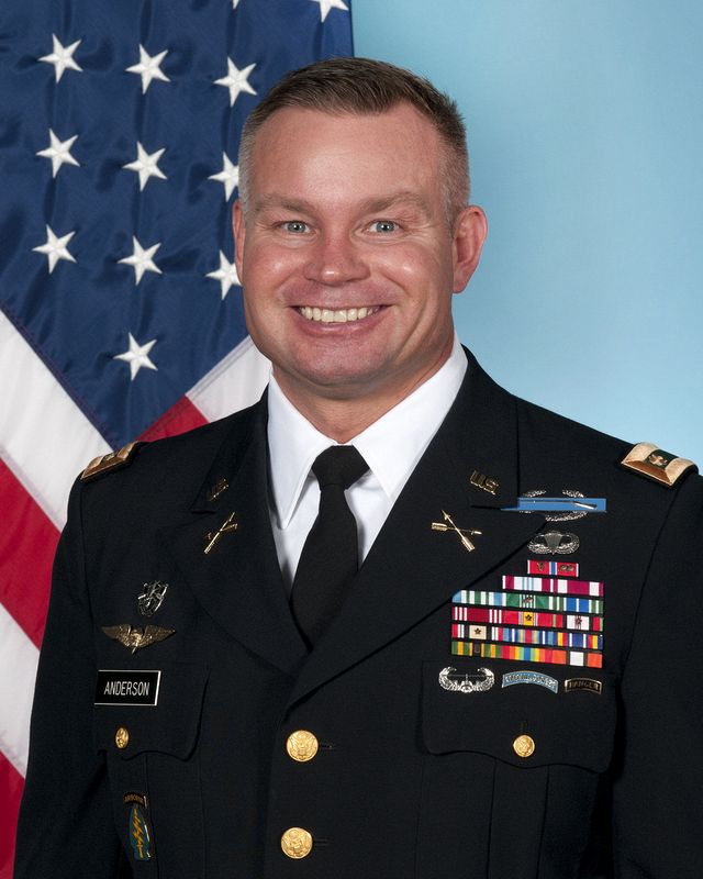 CPT Anderson's detachment was patrolling the Afghanistan-Pakistan border when they heard rocket propelled grenade (RPG) and automatic small arms fire in the vicinity of an Afghani border checkpoint three kilometers away. Realizing that the checkpoint was under attack by Anti Coalition Militia Forces (ACM), CPT Anderson ordered the detachment to move forward to the sound of the guns to aid the besieged Afghan position. As the detachment neared the checkpoint, CPT Anderson's vehicle came under heavy automatic and small arms fire from the ACM forces. CPT Anderson immediately stepped out of his ground mobility vehicle (GMV) and began engaging the enemy position with his M-240B machinegun. Standing by the GMV, exposed to enemy fire he killed one enemy soldier eliminating the obstacle while the other GMV bounded behind him. He then requested Close Air Support (CAS) and calmly sent a detailed status report over the radio. Pressing the fight, CPT Anderson ordered the detachment to move forward to close with and engage the enemy. When his vehicle became stuck while traversing a dry riverbed, he dismounted and went forward with another team member to an exposed hill in order to provide covering fire while his crew worked to free the GMV. While on the hill, CPT Anderson engaged two more enemy positions, killing one enemy soldier and causing three others to flee. As he was focusing the detachment's fires onto enemy positions with tracer rounds from his M-4 carbine, he was directly exposed to enemy fire and struck in the right leg by debris caused by enemy rounds impacting around his feet. During that time, a RPG exploded directly behind his position. Unwavering, CPT Anderson stayed forward, occupied the hill and prevented the enemy from maneuvering on his detachment. Once the vehicle was free, CPT Anderson kept the detachment bounding forward until he had the enemy trapped between his forces and the mountains. Unable to move any further forward due to impassable terrain, he positioned both GMV s in attack by fire positions. CPT Anderson then dismounted alone and moved 25 meters forward between the two GMV s to designate targets for his team with tracer rounds and ground commander laser pointer (GCP-11). While personally engaging another enemy position, a second RPG exploded 150 meters to his right as the enemy increased their fire in order to mask an attempt at retreat towards the Pakistan Border. The enemies' withdrawal was blocked by the detachment's location and the fire directed by CPT Anderson. CPT Anderson calmly remained in the exposed forward position engaging the enemy and focusing fires until two AH-64 Apache Attack helicopters came on station. CPT Anderson guided the two AH-64 Apache Attack helicopters in on the enemy positions with the GCP-11, enabling them to engage and kill 1 7 more ACM soldiers. Due to the direct actions of CPT Anderson, the detachment was able to close with and destroy a numerically superior enemy force during close and continuous fighting that saved the border checkpoint from certain annihilation. CPT Anderson acquitted himself valiantly in one of the largest combat engagements of Operation ENDURING FREEDOM. The leadership, courage, warrior spirit and dedication to duty displayed by CPT Anderson reflect great credit upon himself, the Combined Joint Special Operations Task Force-Afghanistan, and the United States Army.
